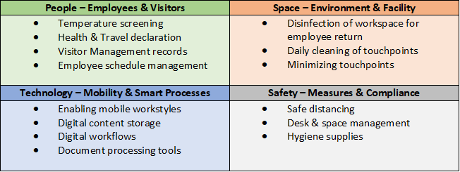 The following checklist are some of what needs to be addressed for "Returning to Office in the New Normal"